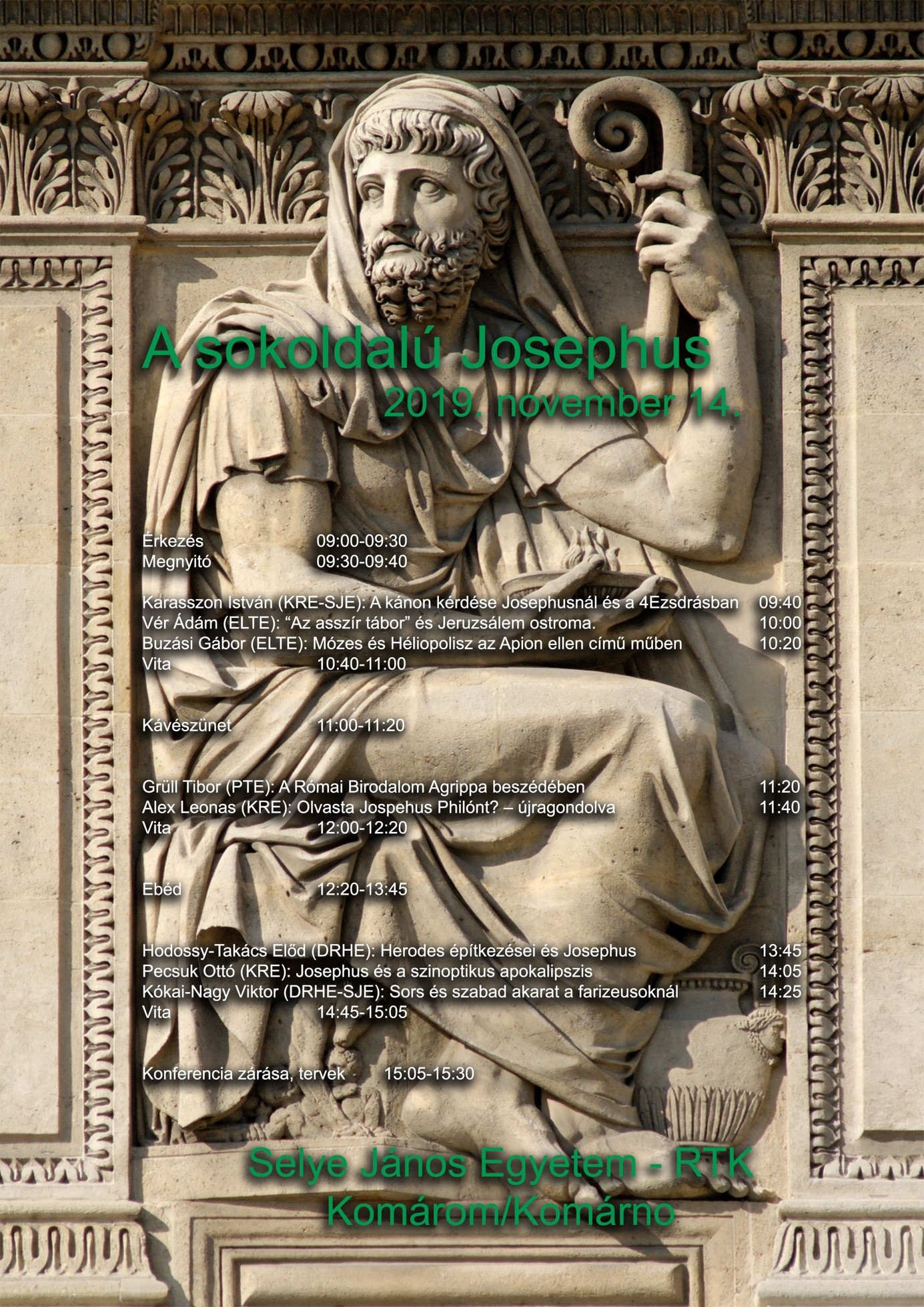 A Josephus Kutatóintézet megalapításakor eredendően az volt az ötletünk, hogy nem csupán Komáromban fogunk konferenciákat szervezni, hanem megpróbálunk eljutni minél több egyetemre és felsőoktatási intézménybe. Noha a Covid miatti szünet visszavetette a tervek megvalósulását, az eredeti elképzelést nem adtuk fel. Ahogyan azt az sem, hogy a kezdeti bizonytalan témameghatározások után, most már igyekezzünk tematikus konferenciákat rendezni. E két szál összefonódásából született a Heródes konferencia, aminek a Károli Gáspár Református Egyetem Hittudományi Kara adott otthont, Budapesten.