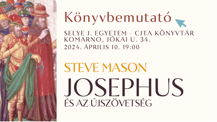 Nagy örömmel vettük a Kálvin Kiadó megkeresését, hogy Steve Mason immáron magyarul is olvasható Josephus és az Újszövetség című könyvének sajtónyilvános bemutatója Komáromban legyen. Noha a könyv már 2023-ban megjelent, úgy gondoltuk, mégis várunk a kötet bemutatásával néhány hónapot, amikor Mason professzor Komáromba látogat a nemzetközi Josephus konferencia előadójaként és személyesen tud válaszolni az érdeklődők kérdéseire.